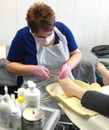 Perus jalkahoito: Jalkojen tutkiminen, jalkakylpy, kynsien leikkuu/ohennus, iho-ongelmien hoito, rasvaushieronta, kotihoito-ohjeet.